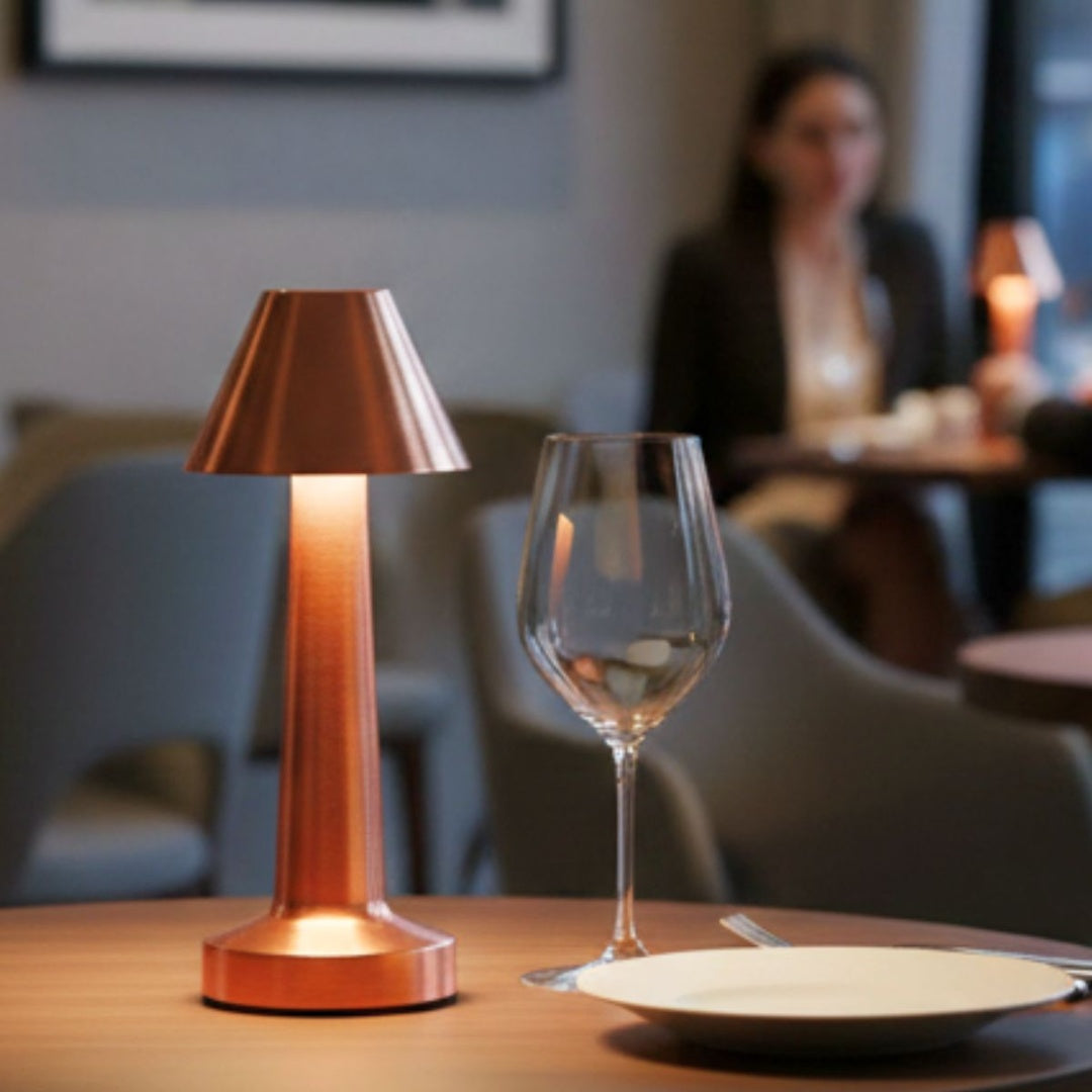 Lámpara de escritorio recargable con diseño elegante y moderno en tonalidad rosa gold. Cuenta con 24cm de altura, proporcionando iluminación óptima para tu espacio de trabajo. Su tecnología recargable digital elimina la necesidad de cables, ofreciendo libertad de movimiento y una estética limpia